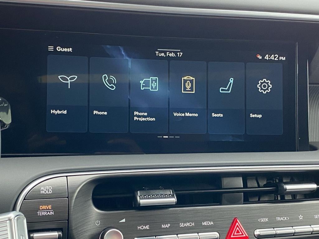 • Radio: Infotainment Navigation System -inc: Bose 14-speaker premium audio system w/Centerpoint and SoundTrue enhanced technology, 12.3" color touchscreen, wireless Apple CarPlay and Android Auto, HD Radio, Sirius XM, Passenger Talk 2.0 in-car intercom system, dynamic voice recognition, rear seat quiet mode, Bluetooth® hands-free w/wireless audio streaming, multiple device connection (up to 2 devices), USB connectivity, Bluelink + connected car services, Wi-Fi hotspot, steering wheel audio controls and Over-the-Air (OTA) software updates
