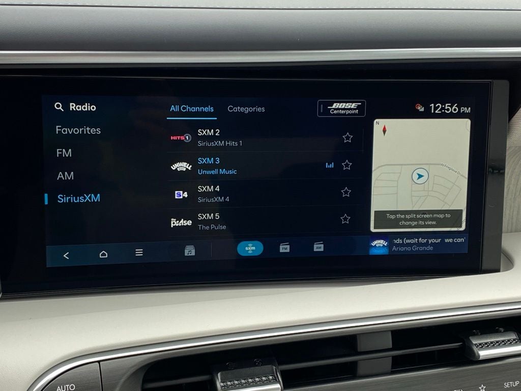 - Radio: Infotainment Navigation System -inc: Bose 14-speaker premium audio system w/Centerpoint and SoundTrue enhanced technology, 12.3" color touchscreen, wireless Apple CarPlay and Android Auto, HD Radio, Sirius XM, Passenger Talk 2.0 in-car intercom system, dynamic voice recognition, rear seat quiet mode, Bluetooth® hands-free w/wireless audio streaming, multiple device connection (up to 2 devices), USB connectivity, Bluelink + connected car services, Wi-Fi hotspot, steering wheel audio controls and Over-the-Air (OTA) software updates