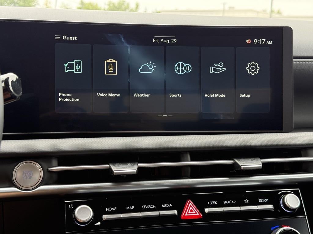 - Radio: AM/FM/HD Audio System -inc: 12.3" Audio-Video-Navigation (AVN) color touchscreen (ccNc) w/onboard navigation, 6 speakers, Blue Link+ connected car system, SiriusXM satellite radio w/3-month trial subscription, wireless Apple CarPlay and Android Auto integration, dynamic voice recognition, Over-the-Air (OTA) map updates and USB connectivity