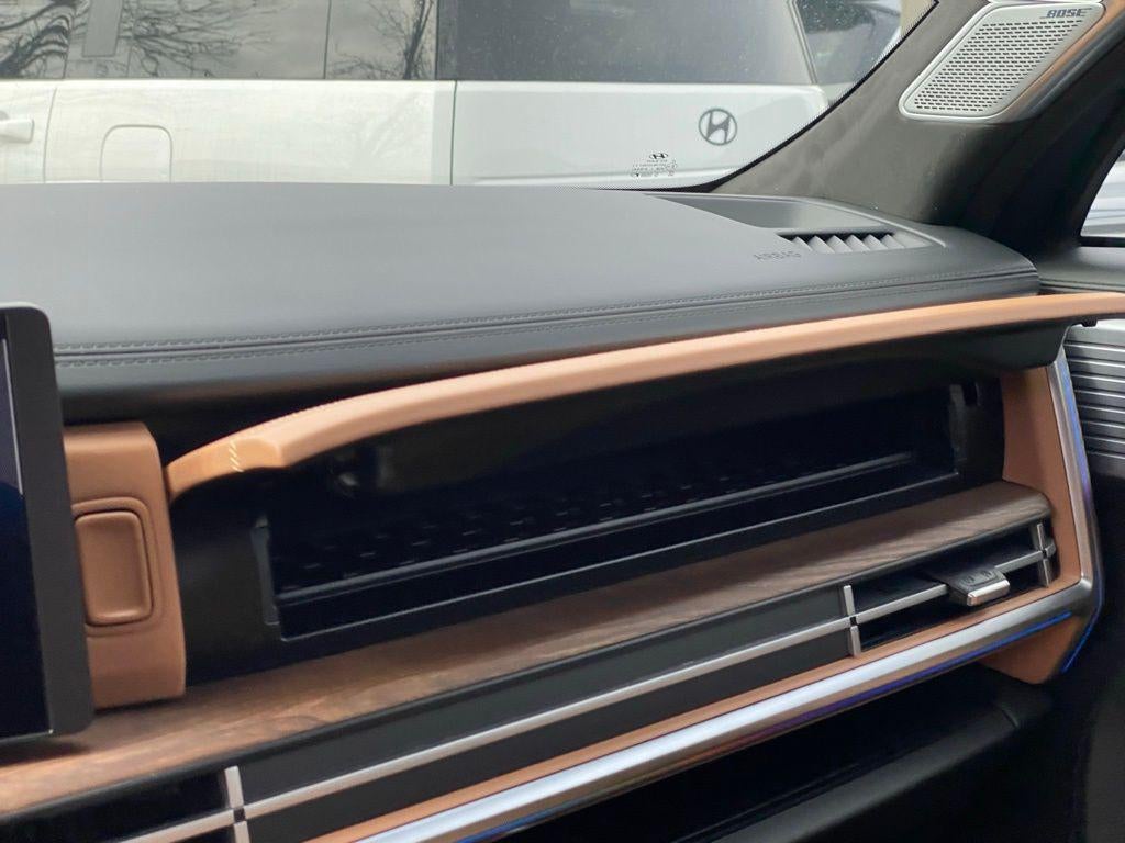 - Radio: AM/FM/HD Bose Premium Audio System -inc: 12 speakers including subwoofer, external amplifier, 12.3" wide touchscreen, wireless Apple CarPlay and Android Auto, Bluetooth® hands-free w/wireless audio streaming, dynamic voice recognition, USB connectivity, SiriusXM, wifi hotspot, Blue Link connected car system, navigation system including traffic flow w/incident data via HD Radio (HERE), OTA updates and rear seat quiet mode