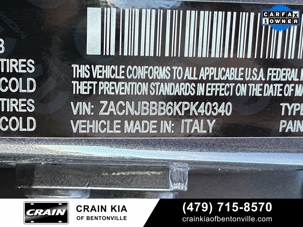 Clean Carfax, One Owner, 17 x 7.0 Aluminum Wheels, 3.734 Final Drive Ratio, 4-Wheel Disc Brakes, 6 Speakers, ABS brakes, Air Conditioning, Alloy wheels, AM/FM radio: SiriusXM, Anti-whiplash front head restraints, Apple CarPlay/Android Auto, Automatic temperature control, Blind Spot & Cross Path Detection, Brake assist, Compass, Delay-off headlights, Driver door bin, Driver vanity mirror, Dual front impact airbags, Dual front side impact airbags, Electronic Stability Control, Four wheel independent suspension, Front anti-roll bar, Front Bucket Seats, Front Center Armrest, Front dual zone A/C, Front fog lights, Front reading lights, Fully automatic headlights, Heated door mirrors, High-Intensity Discharge Headlamps, Illuminated entry, Keyless Entry w/Panic Alarm, Knee airbag, Low tire pressure warning, Manual Adjust 4-Way Front Passenger Seat, Manufacturer's Statement of Origin, My Sky Power/Removable Sunroof, Normal Duty Suspension, Occupant sensing airbag, Outside temperature display, Overhead airbag, Panic alarm, ParkView Rear Back-Up Camera, Passenger door bin, Passenger vanity mirror, Passive Entry Remote Start Package, Power door mirrors, Power steering, Power windows, Premium Cloth Bucket Seats, Quick Order Package 2XB, Radio data system, Radio: Uconnect 4 w/7 Display, Rear anti-roll bar, Rear window defroster, Rear window wiper, Remote keyless entry, Roof rack: rails only, Safety & Security Group II, Security Alarm, Speed control, Split folding rear seat, Spoiler, Steering wheel mounted audio controls, Tachometer, Telescoping steering wheel, Tilt steering wheel, Tonneau Cover, Traction control, Trip computer, Variably intermittent wipers, Voltmeter, Wheels: 18 x 7.0 Painted Aluminum.