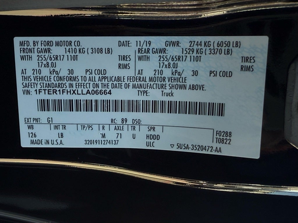 4WD, 12V Power Plug, 3.73 Axle Ratio, 4-Wheel Disc Brakes, 6 Speakers, 8-Way Pwr Driver & Pass Heated Seats w/Pwr Lumbar, ABS brakes, Air Conditioning, Alloy wheels, AM/FM radio: SiriusXM, AM/FM Stereo, Auto High-beam Headlights, Auto-Dimming Rear-View Mirror, Automatic temperature control, Bed Utility Package, Black Grille w/Magnetic Surround, Brake assist, Bumpers: body-color, Compass, Delay-off headlights, Driver door bin, Dual front impact airbags, Dual front side impact airbags, Electronic Stability Control, Emergency communication system: SYNC 3 911 Assist, Equipment Group 302A Luxury, Exposed Front Tow Hooks, Exterior Parking Camera Rear, Front anti-roll bar, Front Bucket Seats, Front Center Armrest, Front dual zone A/C, Front fog lights, Front Premium Cloth Bucket Seats, Front reading lights, Front wheel independent suspension, Fully automatic headlights, Illuminated entry, Leather-Wrapped Shifter, Leather-Wrapped Steering Wheel, Low tire pressure warning, Magnetic Wheel-Lip Molding, Manual-Sliding Rear-Window, Occupant sensing airbag, Outside temperature display, Overhead airbag, Overhead console, Panic alarm, Passenger door bin, Plastic Drop-In Bedliner, Power door mirrors, Power steering, Power windows, Power-Folding Sideview Mirrors w/Power Glass, Rear step bumper, Rear window defroster, Remote keyless entry, Remote Start, Security system, SiriusXM Satellite Radio, Speed control, Speed-sensing steering, Sport Appearance Package, Sport Box Decal, Steering wheel mounted audio controls, SYNC 3, Telescoping steering wheel, Tilt steering wheel, Traction control, Trip computer, Variably intermittent wipers, Voltmeter, Wheels: 17 Magnetic Painted Aluminum, Wheels: 17 Silver-Painted Aluminum.