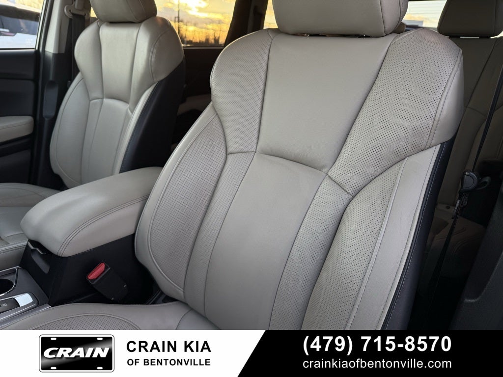 3rd row seats: bench, 4-Wheel Disc Brakes, 6 Speakers, ABS brakes, Air Conditioning, All-Weather Floor Liners, Alloy wheels, AM/FM radio: SiriusXM, Auto High-beam Headlights, Auto-Dimming Exterior Mirror w/Approach Light, Auto-dimming Rear-View mirror, Automatic temperature control, Axle Ratio: 4.44, Brake assist, Bumpers: body-color, Cargo Cover, Cargo Tray, CD player, Compass, Delay-off headlights, Driver door bin, Driver vanity mirror, Dual front impact airbags, Dual front side impact airbags, Electronic Stability Control, Emergency communication system: STARLINK Safety and Security (Subscription Required), Exterior Parking Camera Rear, Four wheel independent suspension, Front anti-roll bar, Front Bucket Seats, Front Center Armrest, Front dual zone A/C, Front fog lights, Front reading lights, Fully automatic headlights, Garage door transmitter: HomeLink, Heated door mirrors, Heated Front Bucket Seats, Heated front seats, Heated rear seats, Heated steering wheel, Illuminated entry, Knee airbag, Low tire pressure warning, Memory seat, Occupant sensing airbag, Outside temperature display, Overhead airbag, Overhead console, Panic alarm, Passenger door bin, Passenger vanity mirror, Perforated Leather-Trimmed Upholstery, Popular Package #4, Power door mirrors, Power driver seat, Power Liftgate, Power passenger seat, Power steering, Power windows, Radio data system, Radio: Subaru STARLINK 8.0 Multimedia Plus System, Rear air conditioning, Rear anti-roll bar, Rear Bumper Cover, Rear reading lights, Rear seat center armrest, Rear Seatback Protector, Rear window defroster, Rear window wiper, Reclining 3rd row seat, Remote keyless entry, Security system, Speed control, Split folding rear seat, Spoiler, Standard Model, STARLINK/Apple CarPlay/Android Auto, Steering wheel mounted audio controls, Tachometer, Telescoping steering wheel, Tilt steering wheel, Traction control, Trip computer, Turn signal indicator mirrors, Variably intermittent wipers, Wheels: 20 Dk Gray Aluminum Alloy w/Machine Finish.