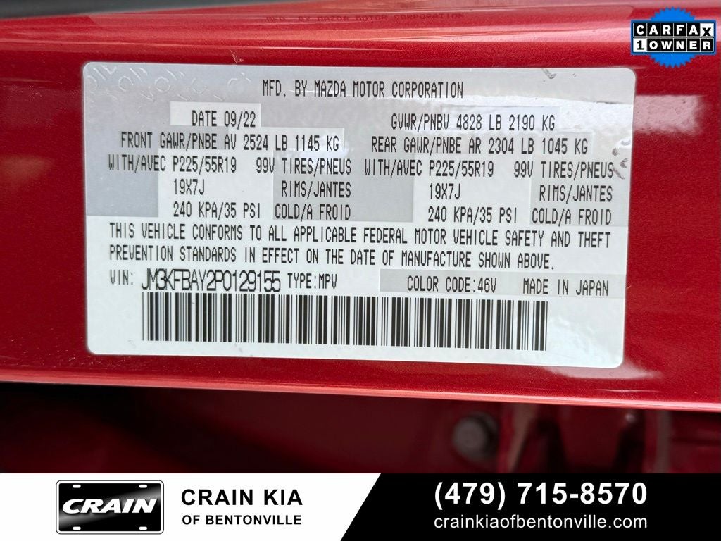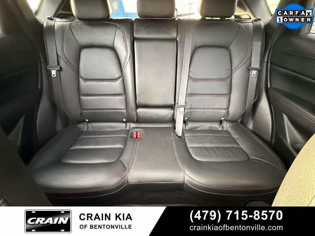 Clean Carfax, One Owner, 10 Speakers, 4-Wheel Disc Brakes, 4.411 Axle Ratio, ABS brakes, Air Conditioning, Alloy wheels, AM/FM radio: SiriusXM, AppLink/Apple CarPlay and Android Auto, Auto High-beam Headlights, Auto-dimming Rear-View mirror, Automatic temperature control, Brake assist, Bumpers: body-color, Delay-off headlights, Driver door bin, Driver vanity mirror, Dual front impact airbags, Dual front side impact airbags, E911 Automatic Emergency Notification, Electronic Stability Control, Emergency communication system: MAZDA CONNECT, Exterior Parking Camera Rear, Four wheel independent suspension, Front anti-roll bar, Front Bucket Seats, Front Center Armrest w/Storage, Front dual zone A/C, Front reading lights, Fully automatic headlights, Garage door transmitter: HomeLink, Heads-Up Display, Heated door mirrors, Heated front seats, Heated rear seats, Heated steering wheel, Heated/Ventilated Front Bucket Seats, Illuminated entry, Infotainment System Voice Command, Leather Seat Trim, Leather Shift Knob, Low tire pressure warning, Memory seat, Multifunction Commander Control, Occupant sensing airbag, Outside temperature display, Overhead airbag, Overhead console, Pandora, Panic alarm, Passenger door bin, Passenger vanity mirror, Power door mirrors, Power driver seat, Power Liftgate, Power moonroof, Power passenger seat, Power steering, Power windows, Radio Broadcast Data System Program Information, Radio data system, Radio: AM/FM/HD Audio System, Rain sensing wipers, Rear anti-roll bar, Rear reading lights, Rear seat center armrest, Rear window defroster, Rear window wiper, Remote keyless entry, SMS Text Msg Audio Delivery & Reply, Soul Red Crystal Metallic Paint, Speed control, Speed-sensing steering, Split folding rear seat, Spoiler, Steering wheel mounted audio controls, Tachometer, Telescoping steering wheel, Tilt steering wheel, Traction control, Trip computer, Turn signal indicator mirrors, Variably intermittent wipers, Ventilated front seats, Wheels: 19 x 7J Aluminum Alloy.