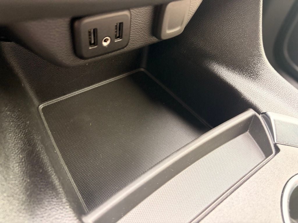 - Console, front center with 2 cup holders, covered storage bin with storage and removable tray