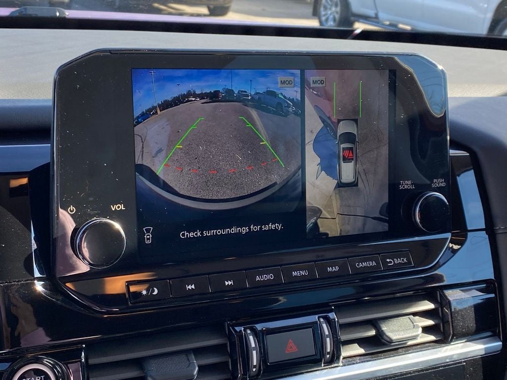 Lane Keeping Assist; Driver Attention Warning, Blind-Spot Collision-Avoidance Assist; Safe Exit Assis, THE HOME OF SALES TAX PAID ON NEW. CRAIN COMMITMENT ON USED. HONEST, TRANSPARENT, FRICTIONLESS! CRA, 4WD, 3rd row seats: bench, 4-Wheel Disc Brakes, 6 Speakers, ABS brakes, Air Conditioning, Alloy wheels, AM/FM radio: SiriusXM, Auto High-beam Headlights, Auto-dimming Rear-View mirror, Automatic temperature control, Axle Ratio: 4.334, Bench Seat Carpeted Floor Mats (Set of 4), Black Splash Guards (Set of 4), Brake assist, Bumpers: body-color, Cross Bars, Delay-off headlights, Driver door bin, Driver vanity mirror, Dual front impact airbags, Dual front side impact airbags, Electronic Stability Control, Emergency communication system, Exterior Parking Camera Rear, Four wheel independent suspension, Front anti-roll bar, Front Bucket Seats, Front Center Armrest, Front dual zone A/C, Front reading lights, Fully automatic headlights, Garage door transmitter: HomeLink, Heated door mirrors, Heated Front Bucket Seats, Heated front seats, Heated steering wheel, Illuminated entry, Knee airbag, Leather steering wheel, Leather-Appointed Seating Surfaces, Low tire pressure warning, Navigation system: NissanConnect with Navigation and Services, NissanConnect featuring Apple CarPlay and Android Auto, NissanConnect w/Navigation & Services, Occupant sensing airbag, Outside temperature display, Overhead airbag, Overhead console, Panic alarm, Passenger door bin, Passenger vanity mirror, Power door mirrors, Power driver seat, Power Liftgate, Power passenger seat, Power steering, Power windows, Radio data system, Radio: AM/FM Audio System, Rear air conditioning, Rear anti-roll bar, Rear reading lights, Rear seat center armrest, Rear side impact airbag, Rear window defroster, Rear window wiper, Reclining 3rd row seat, Remote keyless entry, Security system, Speed control, Speed-sensing steering, Split folding rear seat, Spoiler, Steering wheel mounted audio controls, Tachometer, Telescoping steering wheel, Tilt steering wheel, Traction control, Trip computer, Turn signal indicator mirrors, Variably intermittent wipers, Wheels: 18 x 8J Machined Alloy.