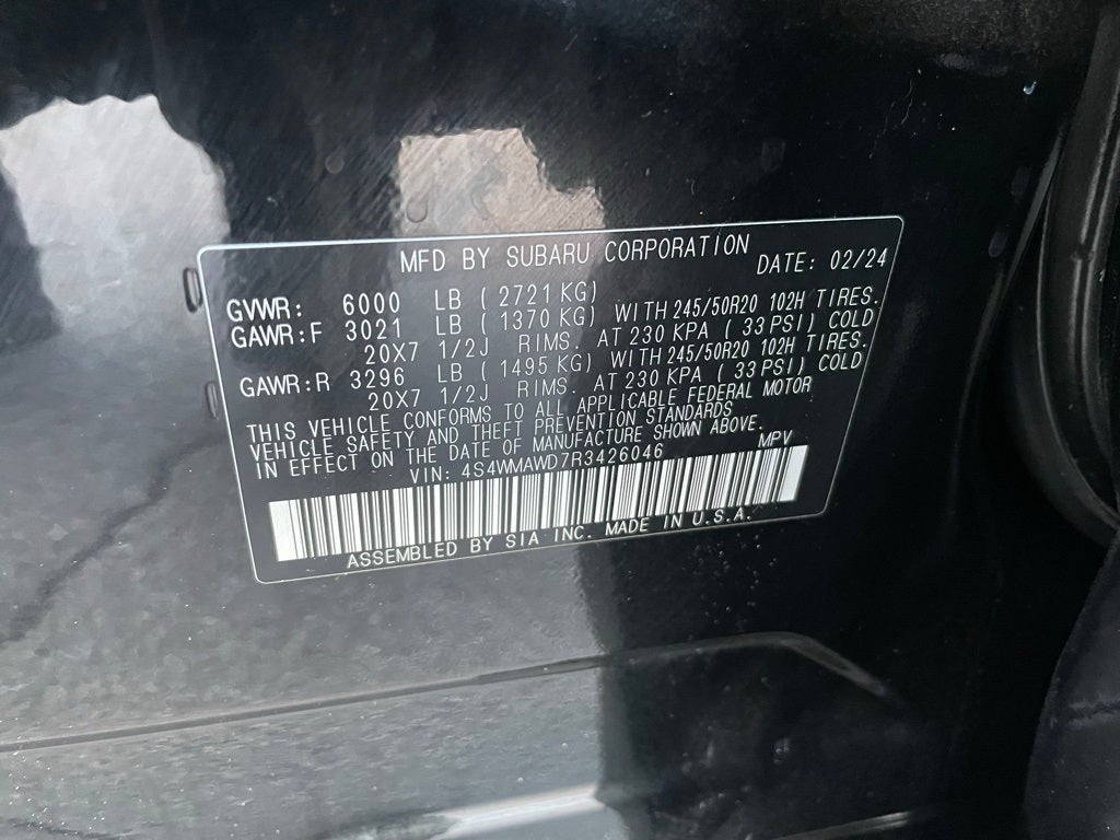 - Wheels: 20" x 7.5 J Dk Gray Alloy w/Machine Finish -inc: black wheel center cap w/Subaru 6 star logo