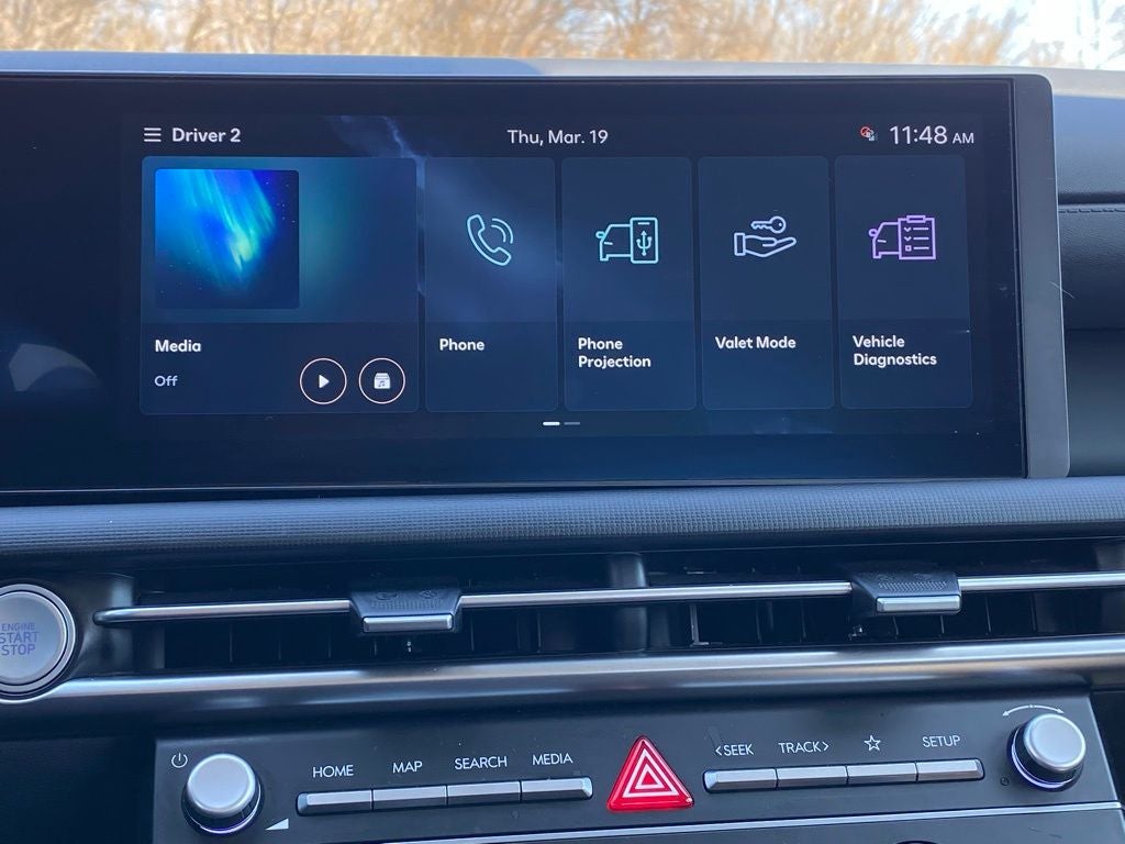 - Radio: AM/FM/HD Audio System -inc: 12.3" color touchscreen display, 6 speakers, SiriusXM satellite radio system (3-month trial subscription), wireless Apple CarPlay and Android Auto integration, controller OTA update capability, Blue Link connected car system and USB connectivity